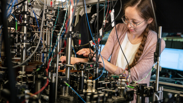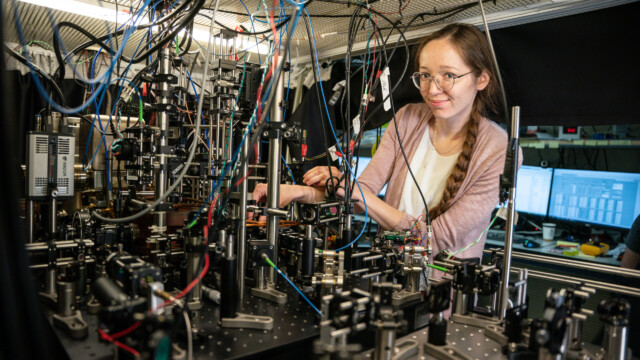 We pursue two parallel research lanes in our group. In the first one, we start with a room temperature cloud and cool it down towards the quantum ground state. Then, we can study the ground state properties and its response to excitations. This approach is referred to as “top-down”. In the second route, we prepare an array of micro-optical traps (also called optical tweezers), in each of which we trap one atom. By carefully controlling each of these tweezers, we can engineer an initial state and study its evolution in a potential landscape we arrange. Within this “bottom-up” approach, it is also possible to implement quantum computation. Quantum information is stored in internal degrees of freedom of the atoms (“qubits”), and gates can be implemented by bringing the tweezers close to each other. Read more about our research here.